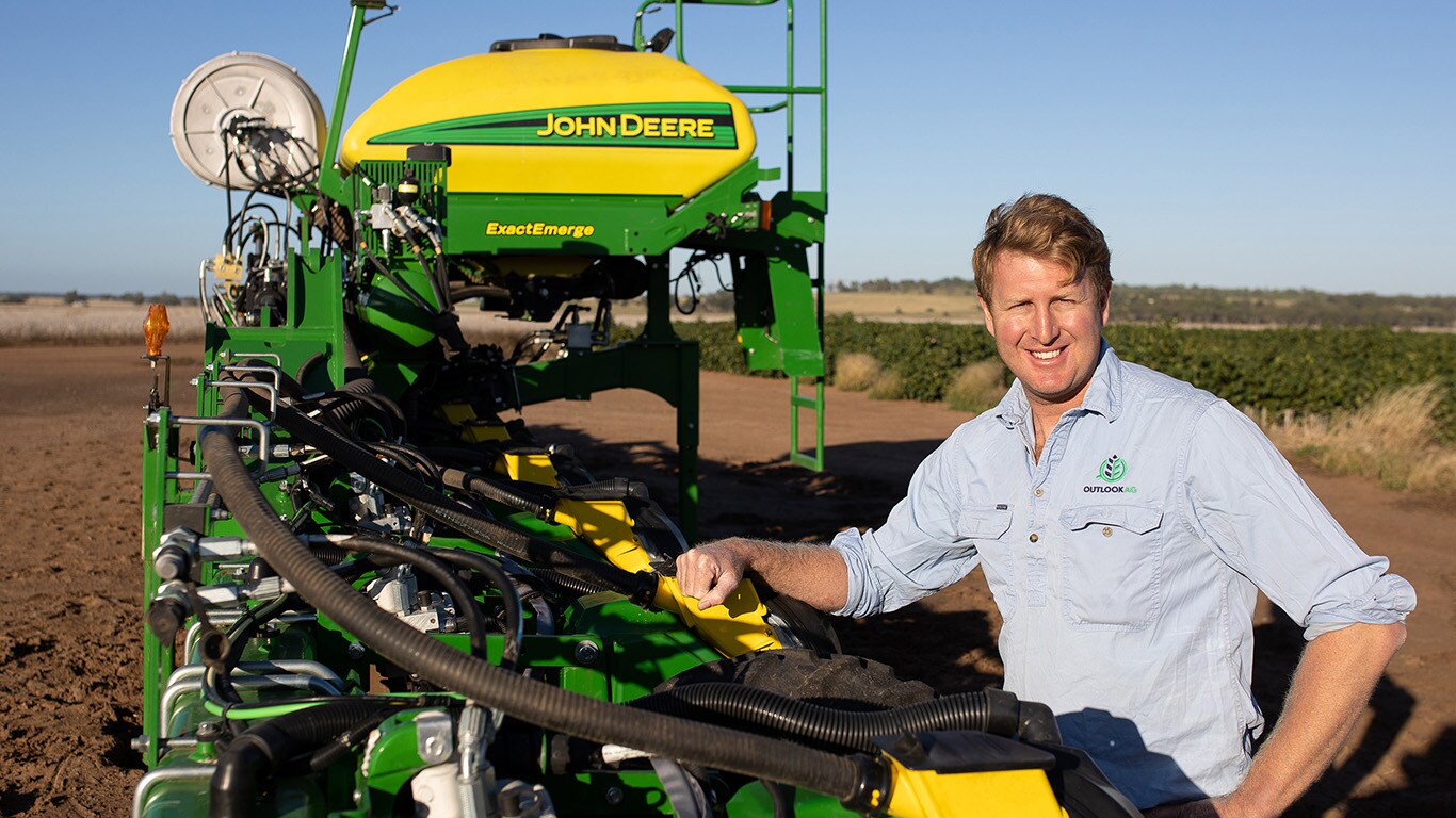 Mitch Cuell, Outlook Ag, Agronomist, has worked as a commercial consultant to the University of Sydney for the past five years and watched ExactEmerge's monitoring capacity from the cab of the John Deere 8R 370 pulling the planter.